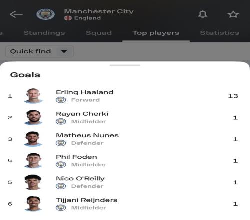 在射手榜上,哈兰德本赛季的优势已经达到了7个球(第二名维尔贝克6球)。而整个联赛中,其他球员的进球数仍未能达到他的一半,而且联盟中有一半球队目前的总进球数都比哈兰德的13个要少。