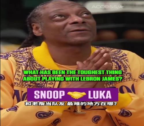 在采访中,Snoopy Dogg问东契奇:“和詹姆斯当队友,最难的地方在哪里?” 东契奇回答:“没什么困难的,一点都没有。” 狗爷表示:“我等的就是这句话。这是我要的标准答案,和他相处必须得轻松愉快。” 东契奇笑了。