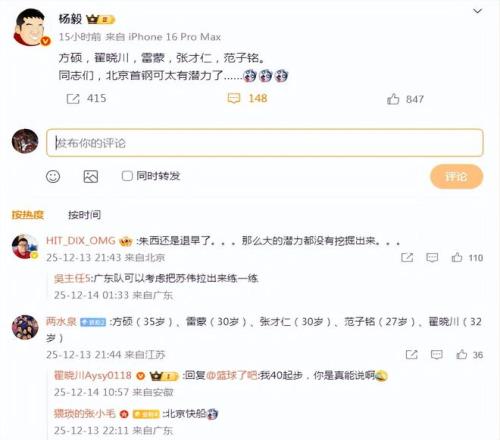 北京组U30阵容参加潜力赛遭杨毅讥讽篮协订奇葩规则竟为节约路费