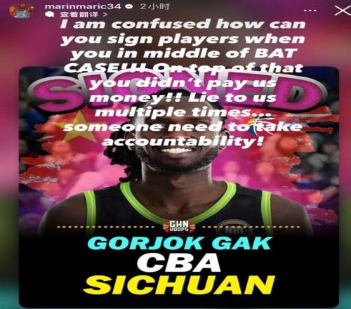 曾经效力过四川男篮的外援马里奇,对前东家还能签约外援感到不可思议:“我实在搞不懂,球队还在破产边缘,怎么还能签新球员!更过分的是,你们一直没付我们工资!还一而再再而三地欺骗我们……必须有人出来负责!”