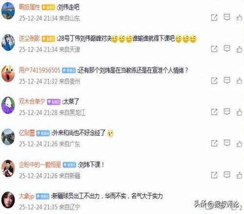 本场比赛发生了比较具有争议性的一幕,新疆男篮主场大比分输球后,有球迷直接在现场喊起了“刘炜下课”,现场没有收音,直接呈现在直播的镜头当中。