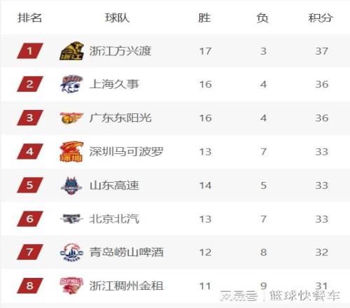 CBA积分榜最新排名出炉!辽篮狂胜重返前12:广厦第1广东第3